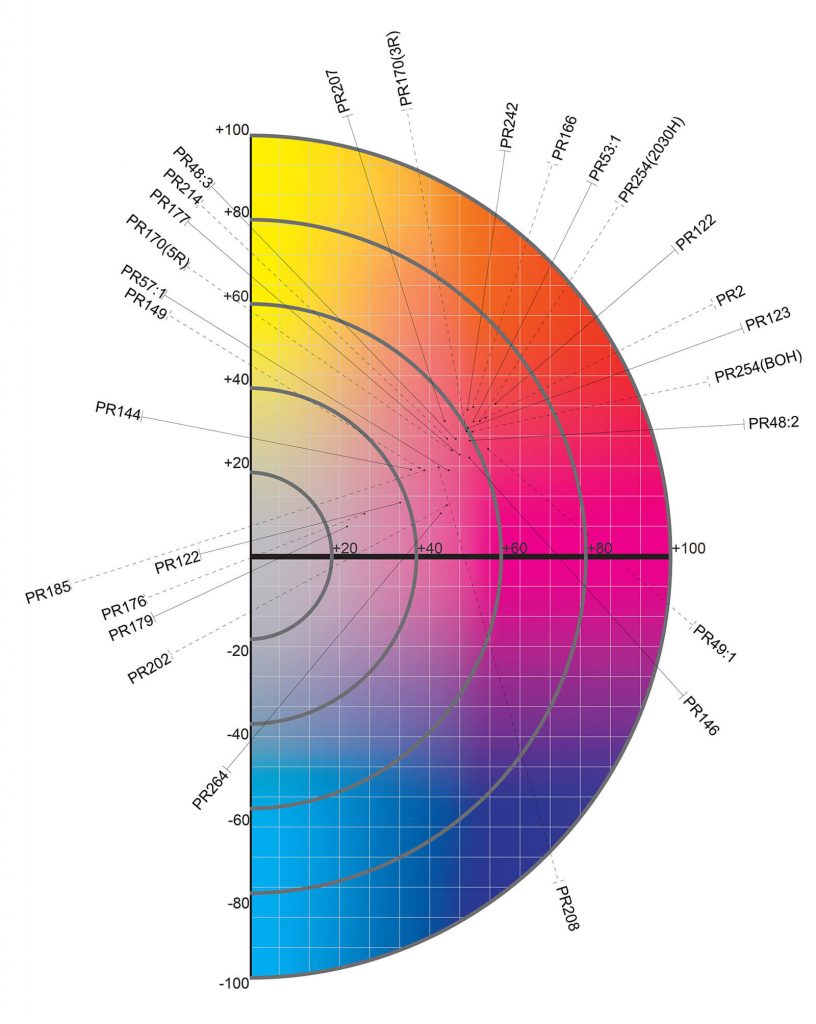 PR 122 dissolves in its medium and changes color accordingly at low concentrations.