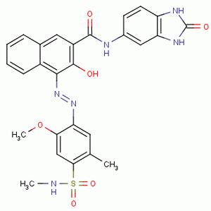 Aliases:2-naftalenkarboksamid, N- (2,3-dihidro-2-okso-lH-benzimidazol-5-il) -3-hidroksi-4 - ((2-metoksi-5-metil-4 - ((metilamino) sulfonil) fenil) azo) -; 2-naftalenkarboksamid, N- (2,3-dihidro-2-okso-lH-benzimidazol-5-il) -3-hidroksi-4- (2- (2-metoksi-5-metil-4 - ((metilamino) sulfonil) fenil) diazenil) -; N- (2,3-dihidro-2-okso-lH-benzimidazol-5-il) -3-hidroksi-4 - ((2-metoksi-5-metil-4 - ((metilamino) sulfonil) fenil) azo) naftalen-2-karboksamid; 12516; Deep Scarlet; Trajni karmin HF4C; Peony Red [HO]; ; (4Z) -4- {2- [2-metoksi-5-metil-4- (metilsulfamoil) fenil] hidraziniliden} -3-okso-N- (2-okso-2,3-dihidro-lH-benzimidazol-5 -il) -3,4-dihidronaftalen-2-karboksamid