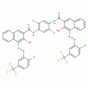 Engleski pseudonim: Pigment crveni 242; PR242; Sandorin Scarlet 4RF; 2-Naphthalenecarboxamide, N, N '-(2,5-dichloro-1,4-phenylene) bis- [4-[[2-chloro-5- ( trifluoromethyl) phenyl] azo] -3-hydroxy-3-hydroxy-; (4Z, 4'E) -N, N '-(2,5-dichlorobenzene-1,4-diyl) bis (4-{[2- chloro-5- (trifluoromethyl) phenyl] hydrazono} -3-oxo-3,4-dihydronaphthalene-2-carboxamide); 4- [2-chloro-5- (trifluoromethyl) phenyl] azo-N- [2,5- dichloro-4-[[4- [2-chloro-5- (trifluoromethyl) phenyl] azo-3-hydroxy-naphthalene-2-carbonyl] amino] phenyl] -3-hydroxy-naphthalene-2-carboxamide; N, N '-(2,5-dichloro-1,4-phenylene) bis [4-[[2-chloro-5- (trifluoromethyl) phenyl] azo] -3-hydroxynaphthalene-2-carboxamide]